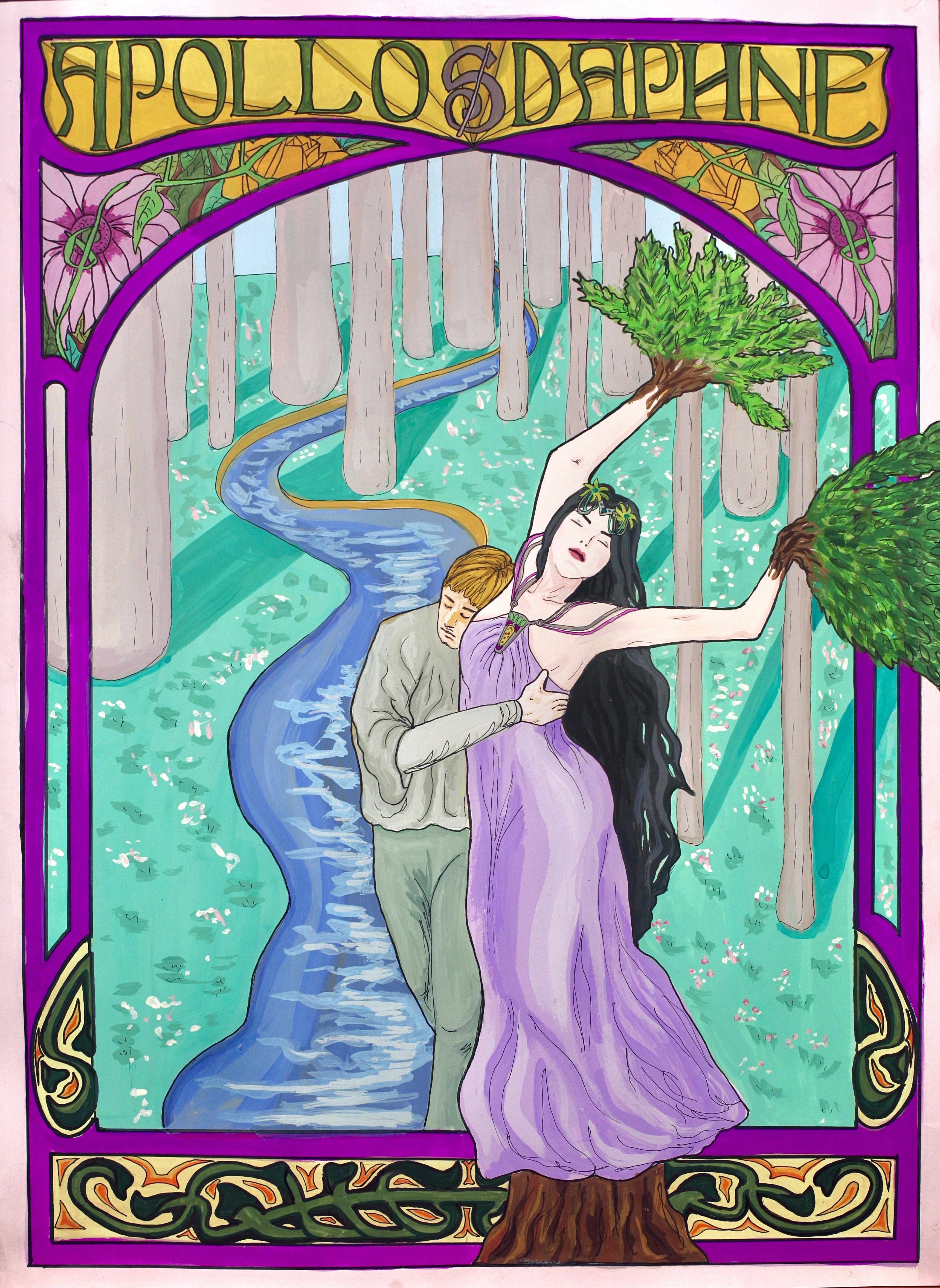 A series of illustrations exploring and experimenting with Art Nouveau visuals, referencing Alfonse Mucha, Otto Prutscher, the Wiener Werkstätte, and the Viennese Secession period.
