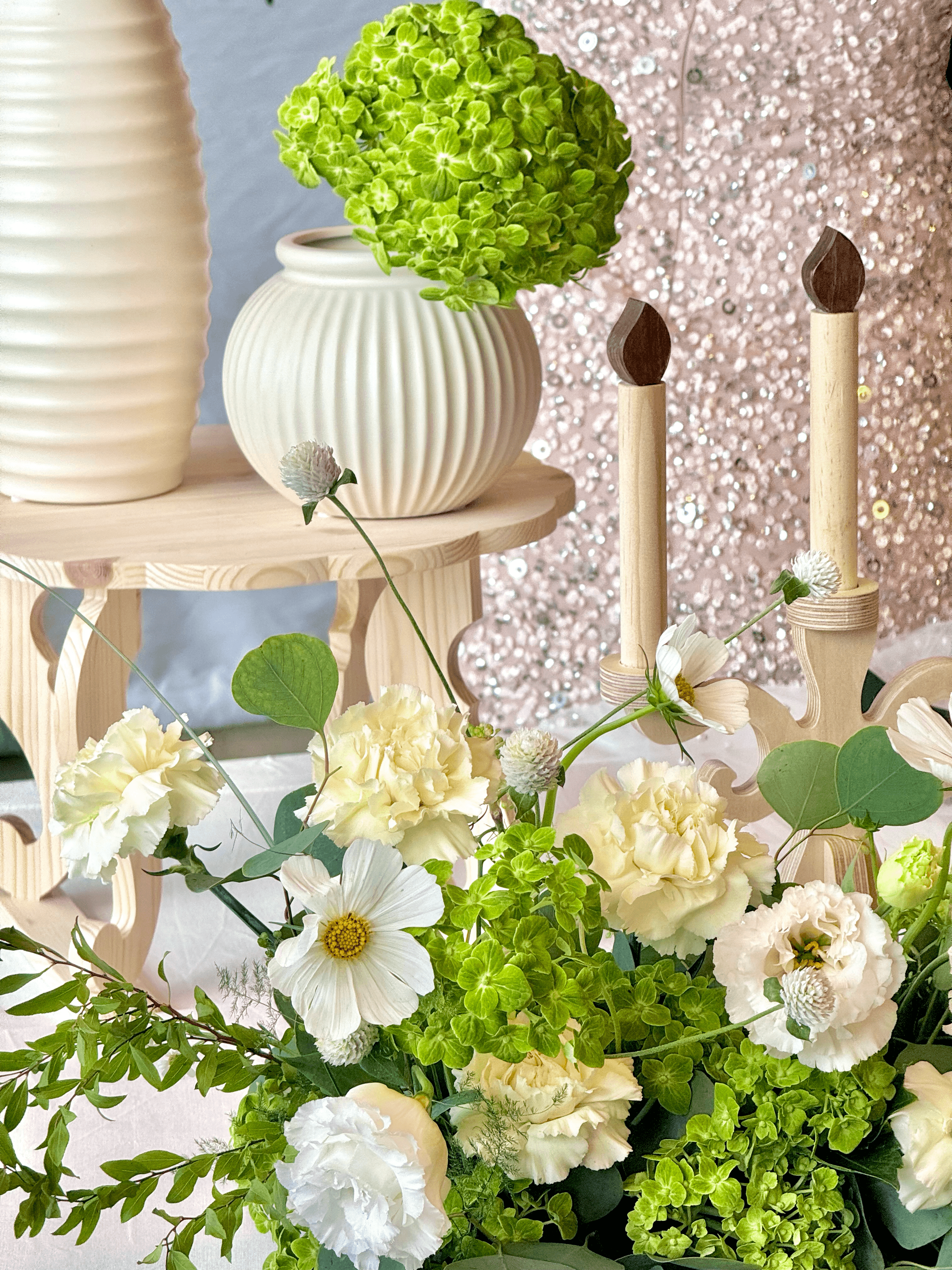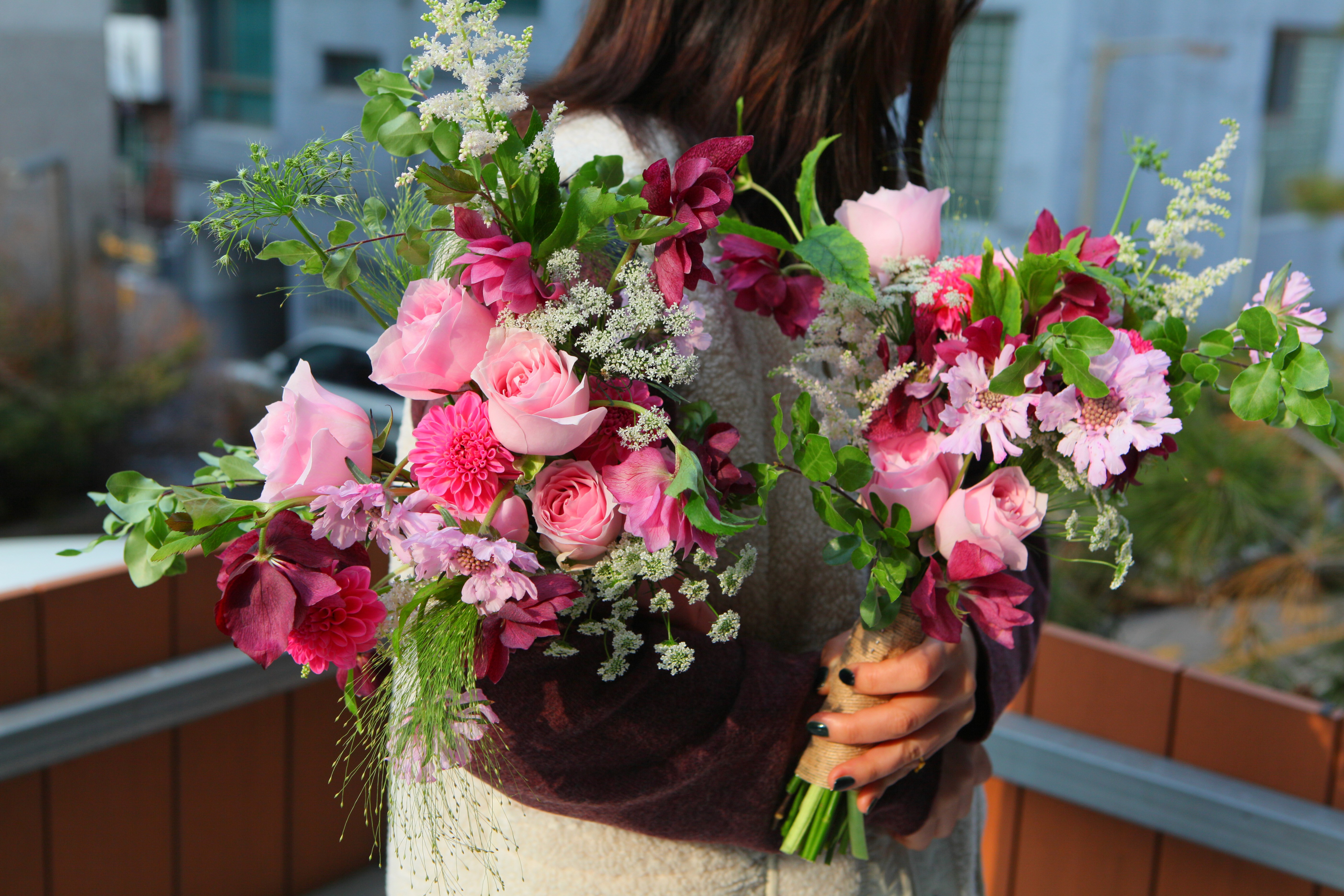 I offer freelance floral design for bouquets, centerpieces, and table arrangements, wedding/event florals, and teaching.