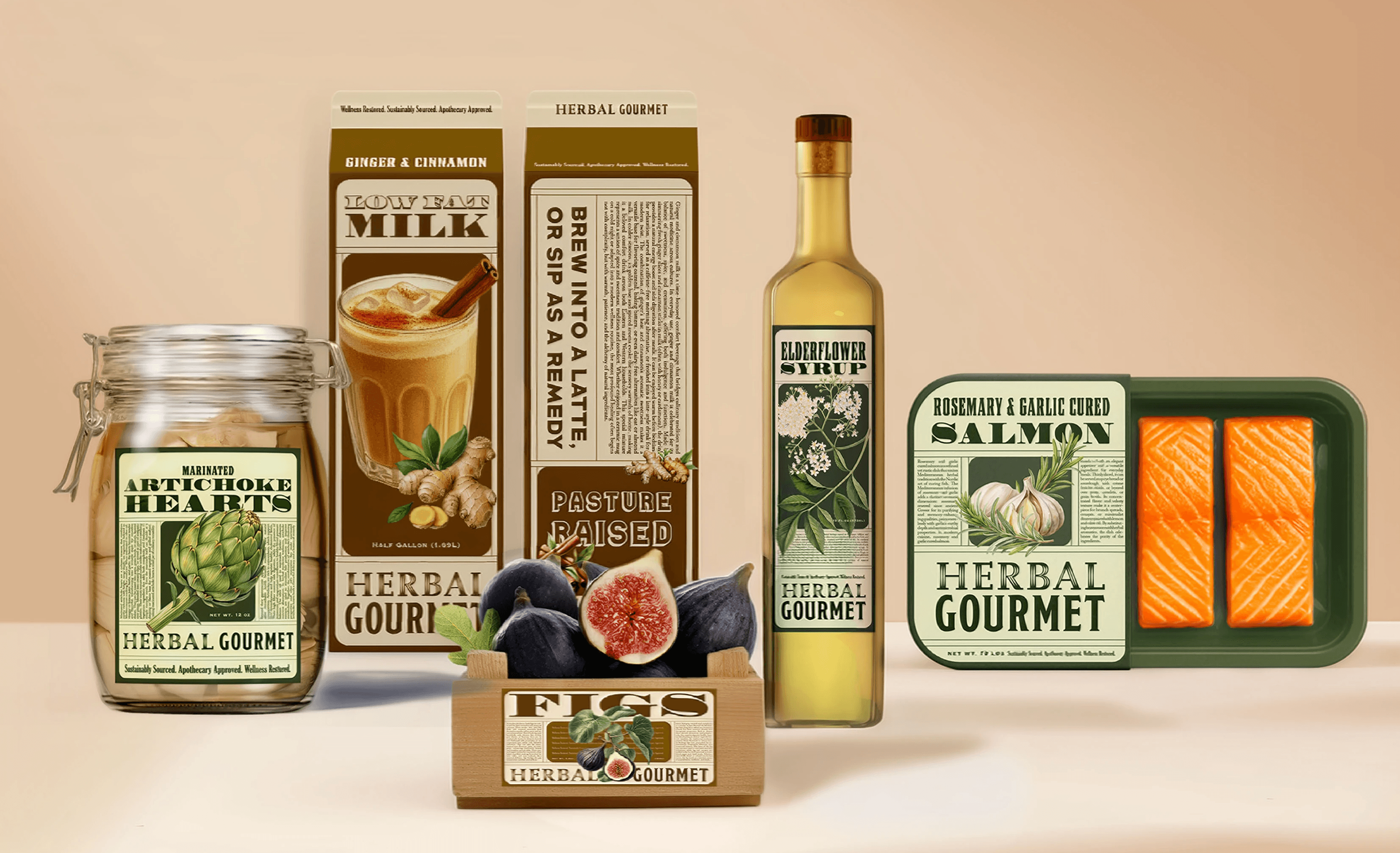 Herbal Gourmet is a premium market brand inspired by the wisdom of botanical apothecaries. The visual direction was designed to convey exclusivity, trust, and modern wellness, blending refined typography with herbal illusrations to elevate everyday pantry into a curated gourmet experience.