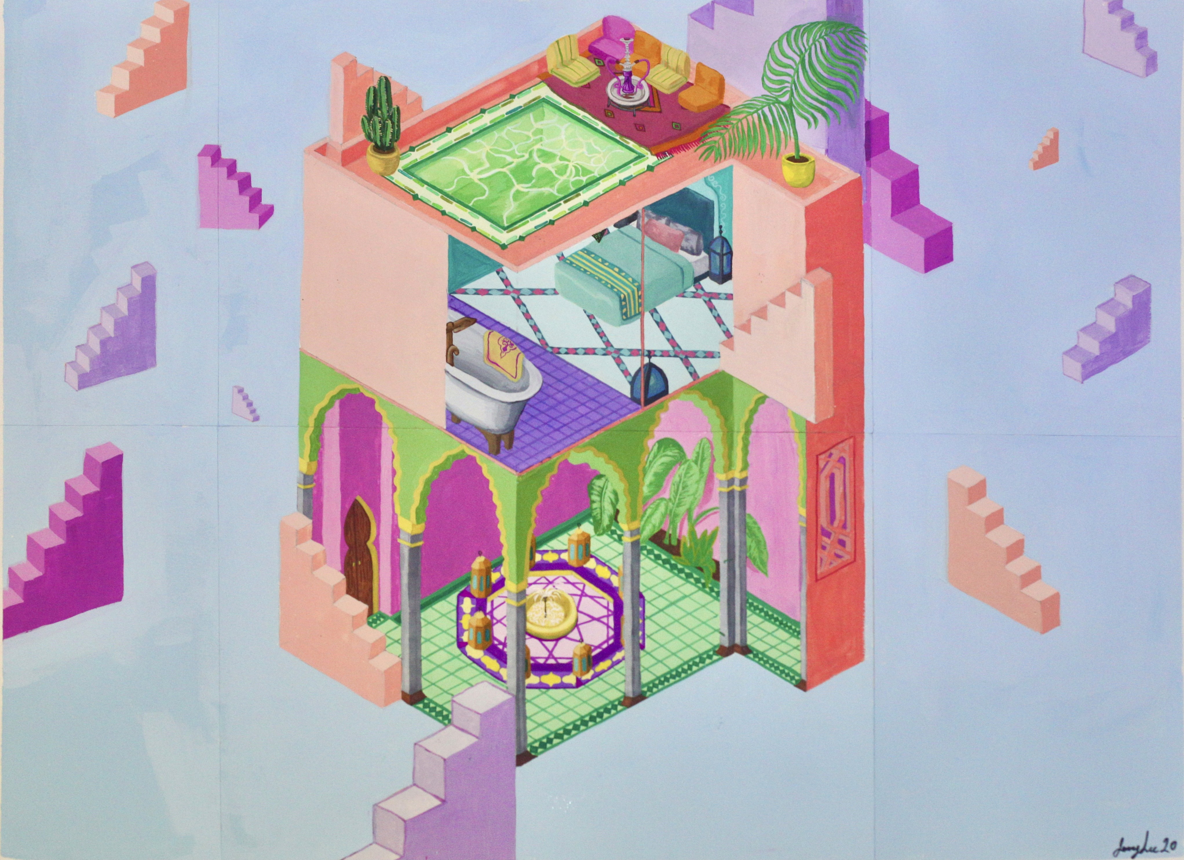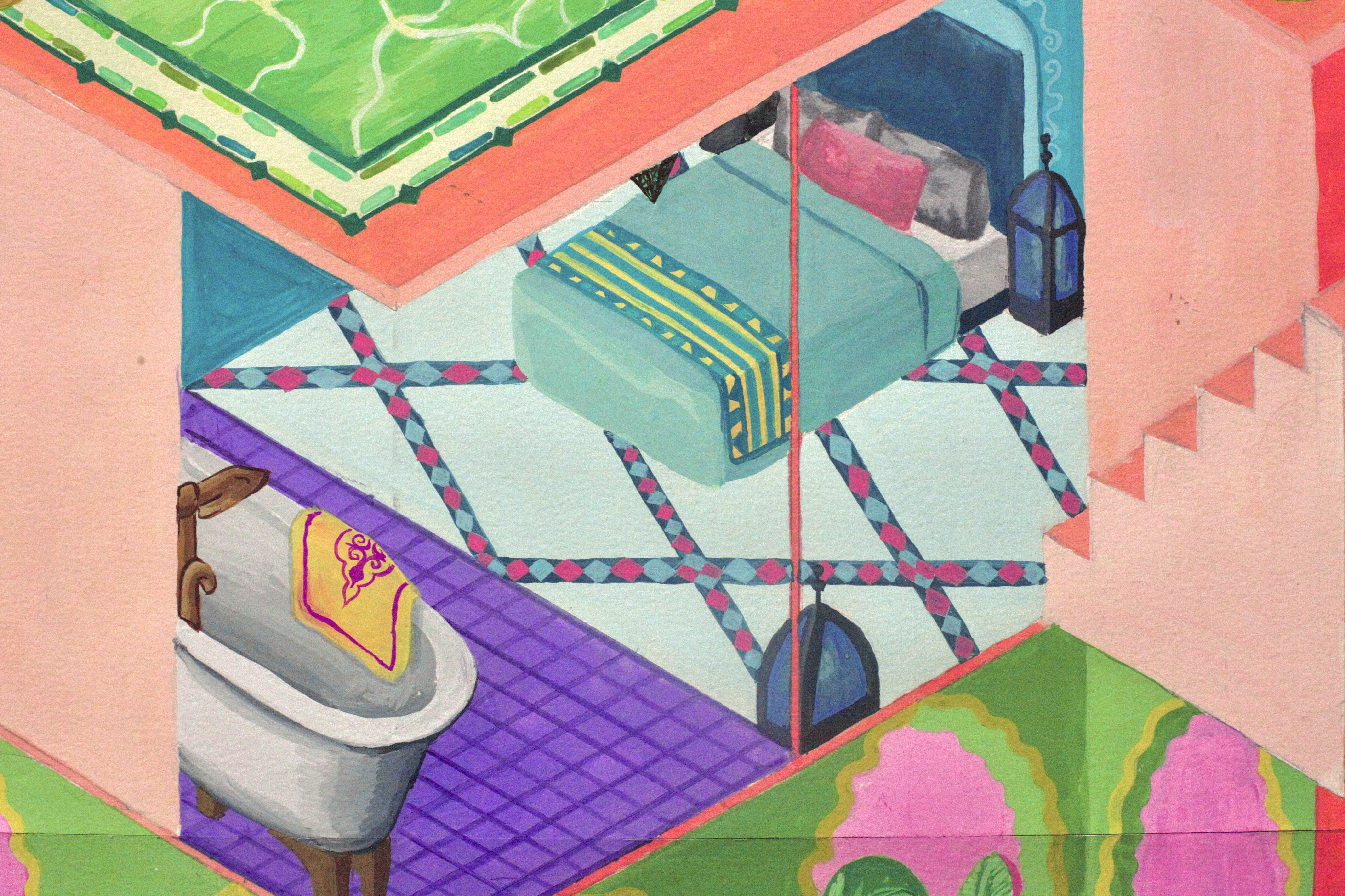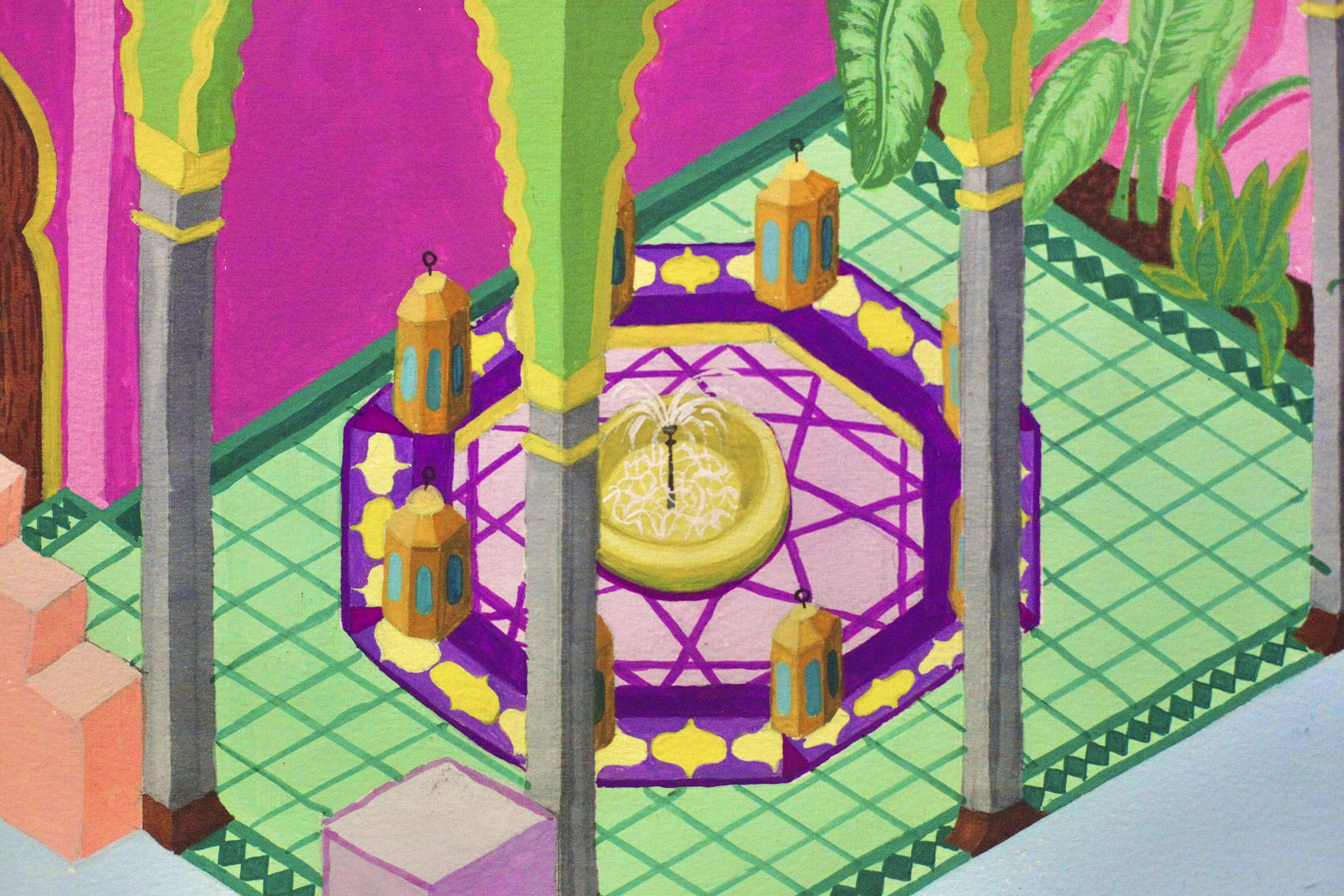 Illustrations exploring my personal fantasy and admiration for Islamic art and architecture, particularly Morocco’s patterns, spaces, and atmosphere.