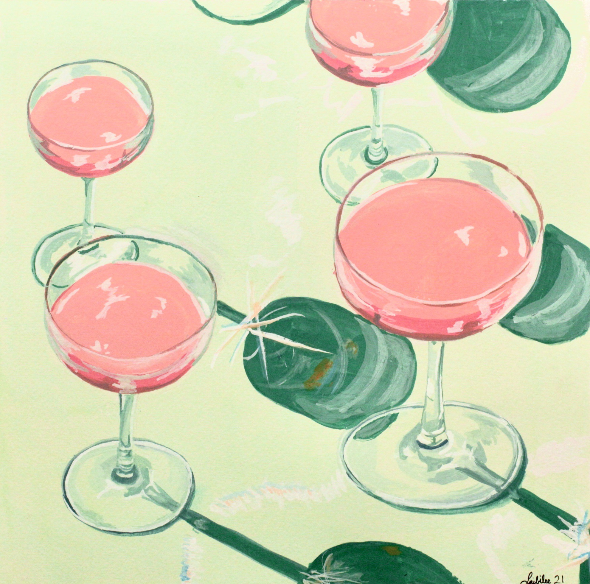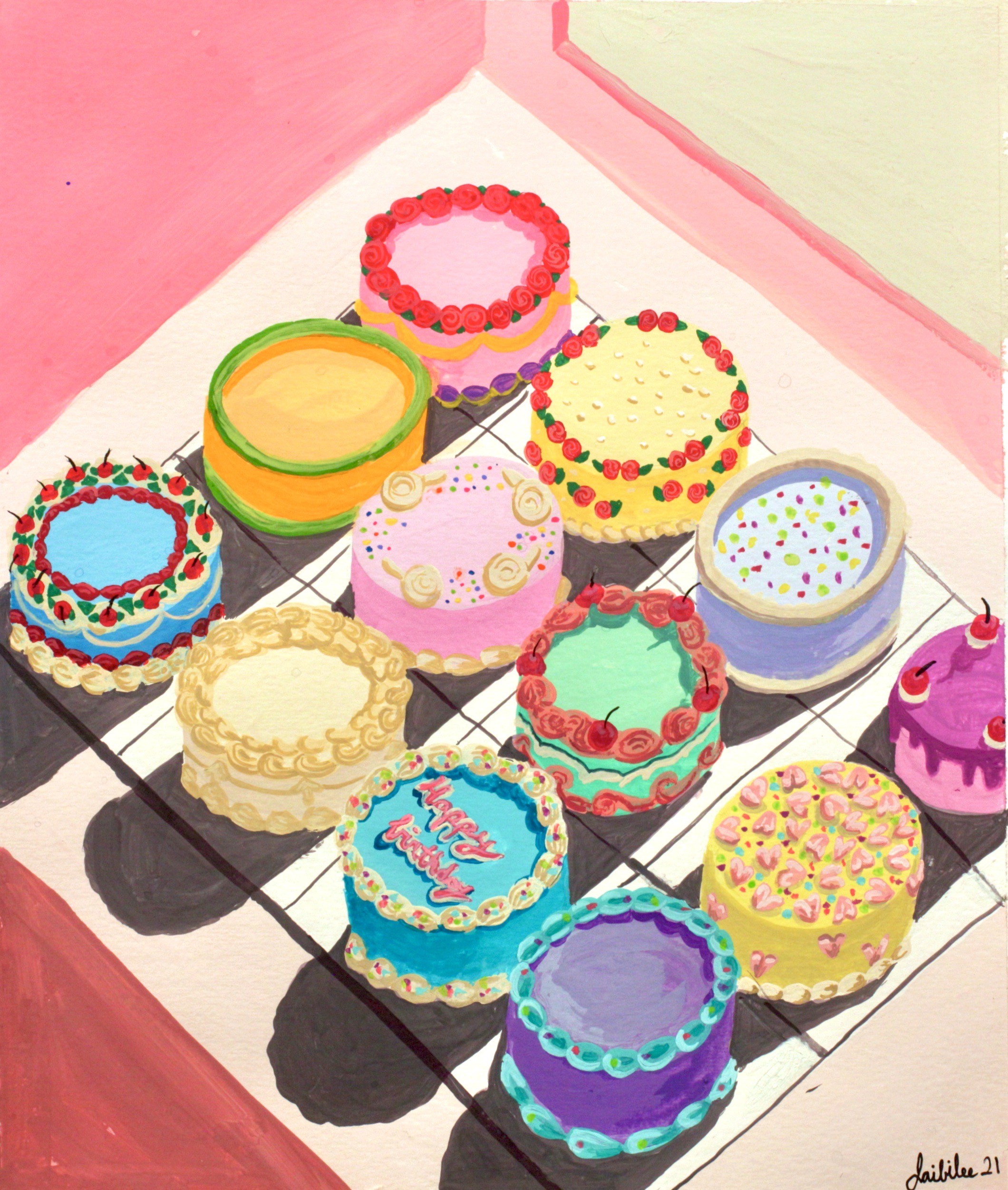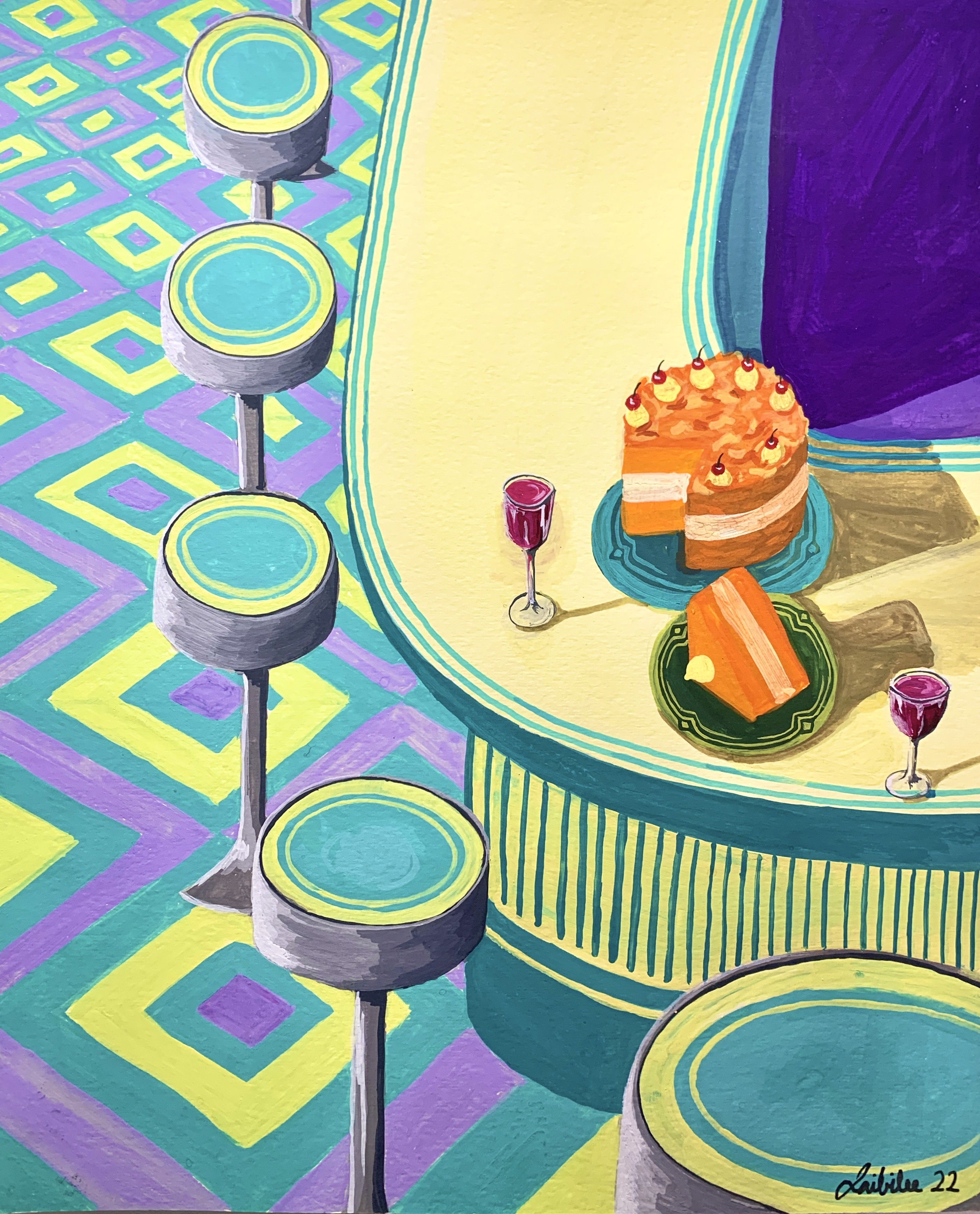 A series of dessert and cocktail illustrations influenced by Wayne Thiebaud’s iconic cake series. I translated his his vibrant and nostalgic style through my own lens.