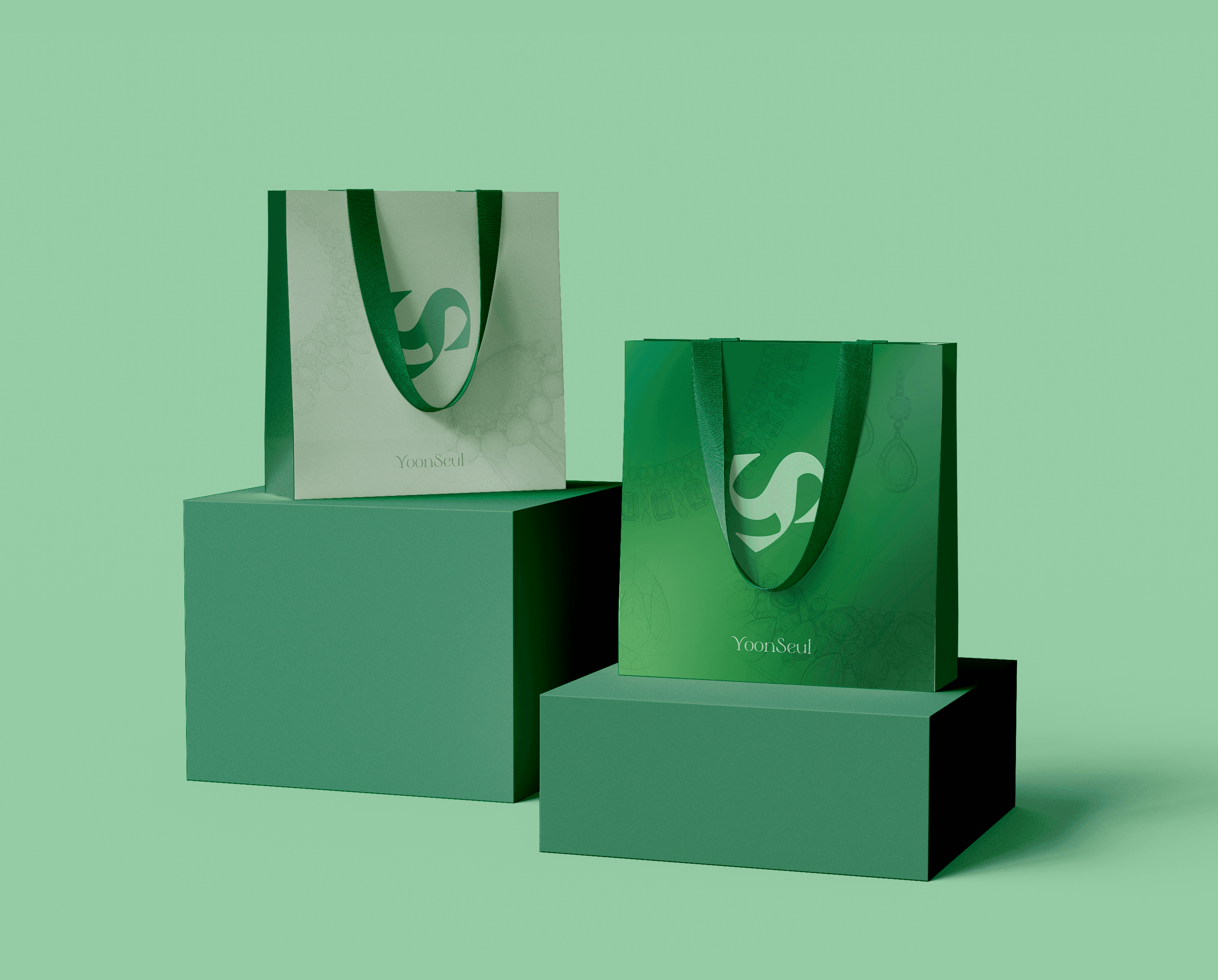 I created Yoonseul, a high jewelry brand whose name is derived from the Korean word which signifies the poetic image of sunlight shimmering on the surface of water. Reflecting this inspiration, Yoonseul’s visual identity embody sophisticated glamour and captivating brilliance.